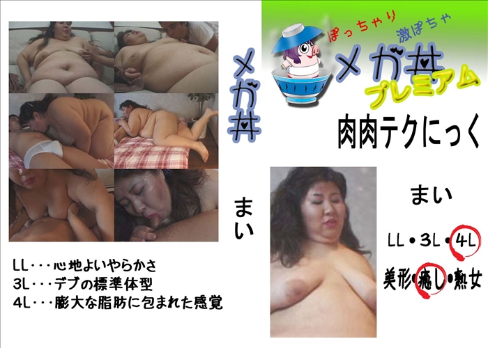 新作 これまた凄いデブである。背はそれほど高くないので、必然的に前と横にでっぱることになるのだが、酒樽を通り越して台形に足が生えたような体型をしていらっしゃる。言ってみれば某ポ○ンキーのCMキャラクターのような……。そんなおデブちゃんが一生懸命男とからんでくれるのだが、体型的な問題で何をするにも限界が。69の時点で男は真っ赤な顔をして圧死寸前。それが顔面騎乗になるともはや拷問でしかなく。デブ専かつドMな人は感情移入するとトリップできるかも。 和物 無修正 フェラチオ 特殊 4L プレミアム メガ丼 デブ 巨漢 ブス 太い ブサイク でぶ専どっとこむ ネット流出 メーカー: ネット流出 女優: まい 58 分