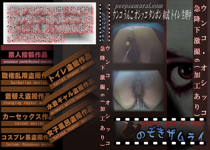 新作 公共の女子便所はいつも行列なので女達は相当排泄を我慢しているのが想像できる映像です。物凄い勢いで発射されるオシッコは便器から飛び出るのではないかと思われる程です。オシッコもさることながら、何度見てもケツの穴が最高に変態心を擽るんですよぉ。このアングルは病み付きになること間違いなしです! ウンコ うんこ オシッコ タンポン 和式 トイレ 生理中 和物 モザイク 盗撮 のぞきザムライ メーカー: のぞきザムライ 女優: - 24 分