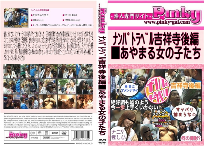 新作 皆様こんにちは。ナンパ★トラベルの時間がやってまいりました!今回は絶好調だった吉祥寺編の後半戦!サクっと4Pまで行った事に気をよくして、次々に声を掛けまくる撮影班。学校が多いせいか、女子大生や専門学校生が沢山!後半戦もサクッといけるかと思いきや、いいところまでいくのに、今一歩撮影にいたりません。ファッションチェックといいながら会話に華を咲かせ、警戒心を取り除いたところでパンチラ撮影したいのですが、怪しい風貌の撮影班に引き気味の女の子たち。このままナンパ失敗で終わってしまうのか?ナンパ★トラベル吉祥寺後編、どうぞごゆっくりお楽しみください。 童顔系 クンニ 和物 ピンキー 無修正 pinky メーカー: pinky 女優: あやまる女の子たち 61 分