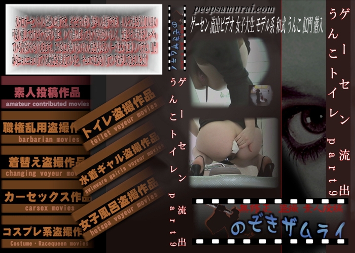 新作 久々にゲーセントイレ盗撮の公開です。ピチピチの若い娘が4人登場ですが、4人と大便を放出! 1人目の可愛い顔してるけどケツが汚い娘は、いくら踏んばってもクソが出ないらしく、友達とその状況をしゃべっている内容がかなり笑えます。こんなに大勢の女の子の大便を見れるシリーズは本当に珍しいですね。肛門からニョロニョロ出てくる軟便を多数見ていると、チュロスにかなり似ている気がしてきましたよ!? 流出ビデオ 女子大生 モデル系 和式 うんこ 肛門 潜入 和物 無修正 盗撮 のぞきザムライ メーカー: のぞきザムライ 女優: - 15 分
