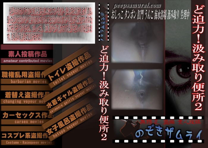 新作 便器の中のカメラでのど迫力映像を楽しみにしている貴方へ第2弾をお届けします!踏ん張った時のお尻の穴から絞り出されるうんこをお尻の穴の真下から見上げる様なアングルなんてそうそうありません。おしっこも、飛び散りながら落ちてくる様子をじっくりと見れます。生理中の排泄もご覧頂けますよ! おしっこ タンポン 肛門 うんこ 海水浴場 汲み取り 生理中 和物 モザイク 盗撮 のぞきザムライ メーカー: のぞきザムライ 女優: - 24 分