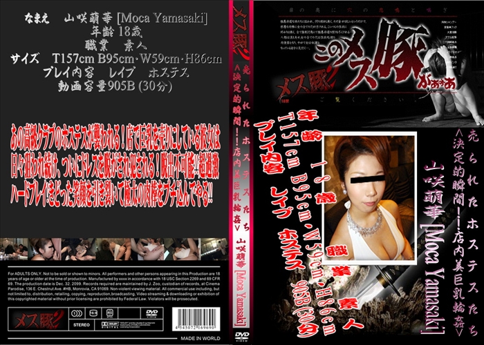 新作 あの高級クラブのホステスが襲われる!店で巨乳を売りにしている彼女は日々狙われ続け、ついにドレスを脱がされ犯される!脱出不可能!!超過激ハードプレイ!きどった笑顔を引き裂いて極太の肉棒をブチ込んでやる!! レイプ ホステス 和物 このメス豚が 無修正 メス豚2 メーカー: メス豚2 女優: 山咲萌華 30 分