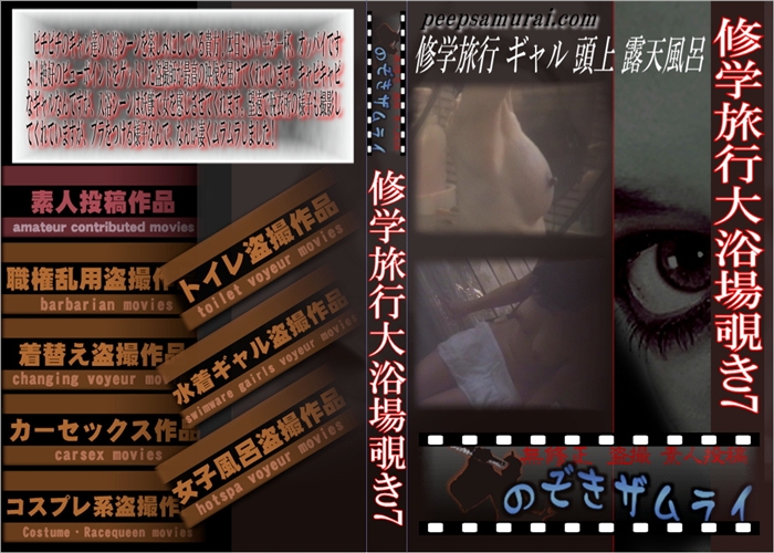 新作 ピチピチのギャル達の入浴シーンを楽しみにしている貴方!本日もいい子が一杯、オッパイですよ!絶好のビューポイントをゲットした盗撮師が最高の映像を届けてくれています。キャピキャピなギャルなんですが、入浴シーンは妖艶で女を感じさせてくれます。望遠で脱衣所の様子も撮影してくれていますが、ブラをつける様子なんで、なんか凄くムラムラしました! 修学旅行 ギャル 頭上 露天風呂 和物 無修正 盗撮 のぞきザムライ メーカー: のぞきザムライ 女優: - 30 分