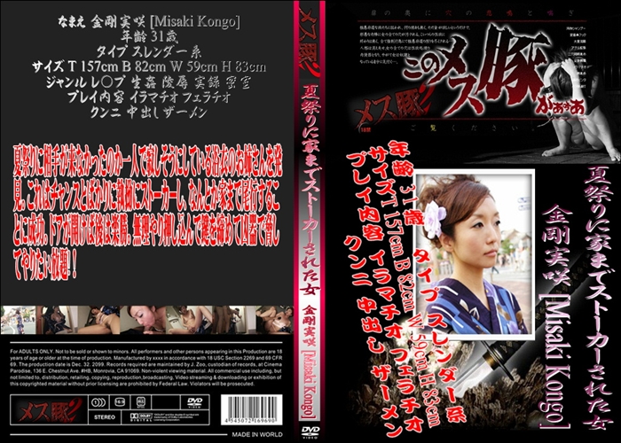 新作 夏祭りに相手が来なかったのか一人で寂しそうにしている浴衣のお姉さんを発見。これはチャンスとばかりに執拗にストーカーし、なんとか家まで尾行することに成功。ドアが開けば後は楽勝。無理やり押し込んで鍵を締めて凶器で脅してやりたい放題!! 中出し ザーメン イラマチオ フェラチオ クンニ 密室 レ○プ 生姦 陵辱 実録 和物 このメス豚が 無修正 メス豚2 メーカー: メス豚2 女優: 金剛実咲 22 分