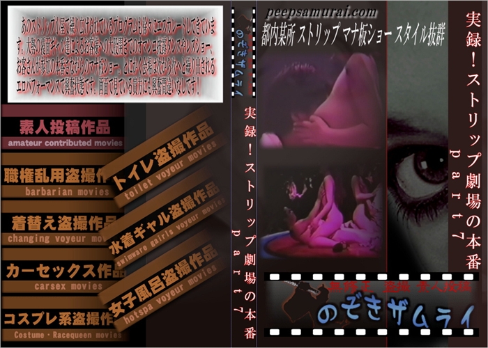 新作 あのストリップ小屋で繰り広げられているプログラムも徐々にエスカレートしてきています。大勢の覆面ギャル達によるお客様への大股開きでのオマンコ披露ダンスやレズショー、お客さんが参加の本番さながらのマナ板ショー。とにかく会場は次から次へと繰り出されるエロパフォーマンスで興奮状態です。画面で見ている貴方にも興奮間違いなしです! 和物 無修正 盗撮 のぞきザムライ メーカー: のぞきザムライ 女優: - 33 分