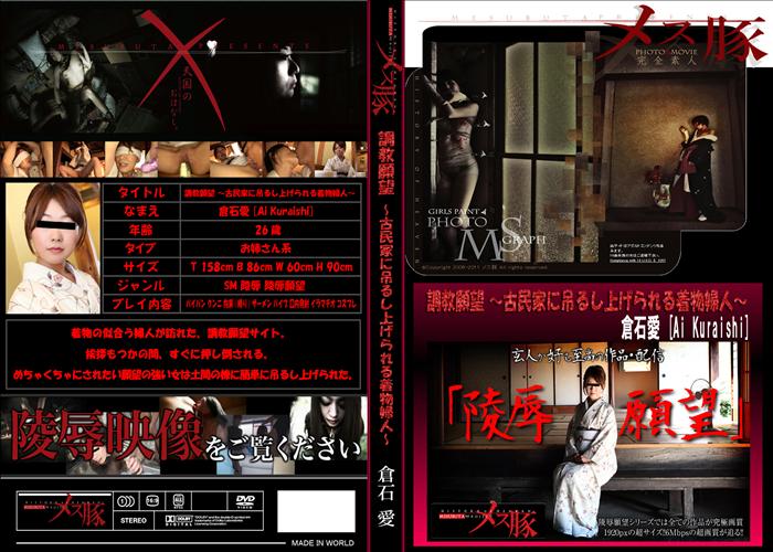 新作 26歳 158cm B86W60H90 (着物の似合う婦人が訪れた、調教願望サイト。手配師に会うと、古民家一軒家の田舎の男を紹介された。挨拶もつかの間、すぐに押し倒される。めちゃくちゃにされたい願望の強い女は土間の棟に簡単に吊るし上げられた。) ※本番なし 無修正 和物 熟女 若妻 人妻 メーカー:メス豚 女優:倉石愛 39分