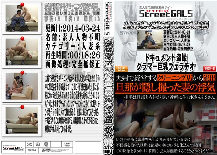 新作 夫婦で経営するクリーニング店から流出した妻の浮気映像!店の中に常連客を上がり込ませていた妻に不信感を抱いた旦那は部屋にカメラを仕込んで録画!今度 の常連客も近所に住む男。しかも今回は本番までヤっていた。ソファーに座った男の上に跨り、チンポを自分の中に入れて腰を振る妻。旦那に撮られてるとも知 らず喘ぎくり!この映像が原因で2人は離婚したようだが撮られた映像は今も出回っているようだ。 無修正 和物 素人 女優 盗撮 メーカー:Street GALS 女優:- 18分