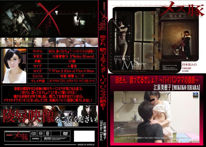新作 部屋の掃除をする母親の胸チラ・パンチラが気になる息子。「母さん、誘ってるでしょ?」と言って襲いかかる!嫌がる母親を台所で押し倒し、裸にして全身をまさぐりまくる。イラマチオでギンギンになったムスコを、母親のパイパン局部に挿入し中出し! 無修正 和物 熟女 若妻 人妻 メーカー:メス豚 女優:江原美樹子 20分