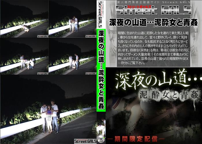 新作 暗闇に包まれた山道に泥酔した女を連れて来た男2人組。車から女を連れ出して、堂々と野外プレイ。酔って気持ち良くなっているのか、女も抵抗することなく 男たちにサービス。さらにその内の1人の男がそのまま立ちバックでハメてしまいます。容赦なく突きまくる男は、最後には彼女のお尻に向かってザーメン大量 発射!その光景を全て車載カメラに映し出されていた。深夜の山道で撮られた暗闇野外SEX…存分にご覧下さい。無修正 和物 素人 女優 メーカー:Street GALS 女優:- 8分